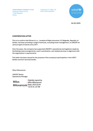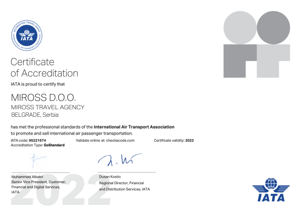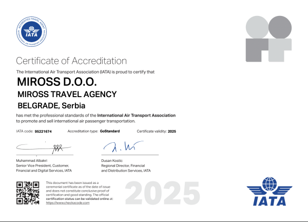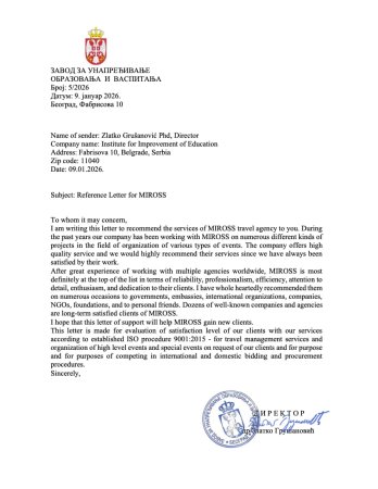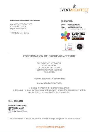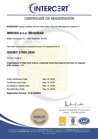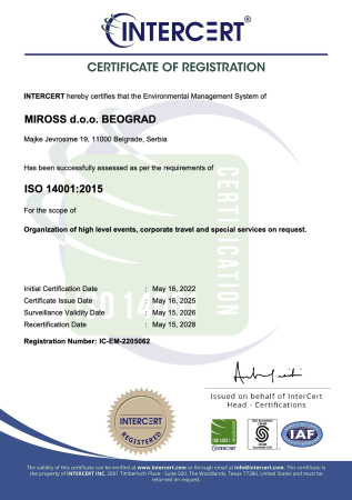 For more than 30 years now, Miross d.o.o. has been the leader in the Serbian and Montenegrin conference tourism market. The agency has been granted over 100 various awards for its work and contribution to the development of the market. In order to meet the eligibility requirements of rigorous certification processes, Miross has been testing regularly the quality of its business process, information safety and overall business operations.